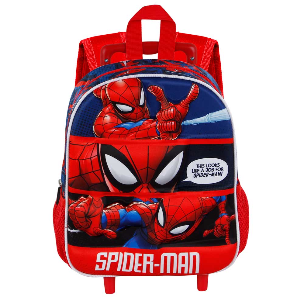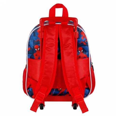 Troler Prescolari, Spiderman 3D, 1 fermoar, 2 buzunare, 26cm x 34cm x 13cm, Rosu