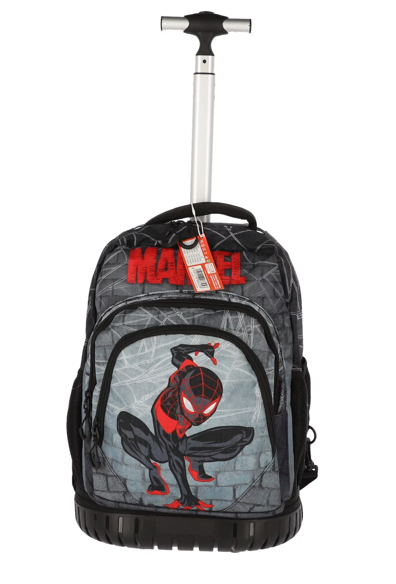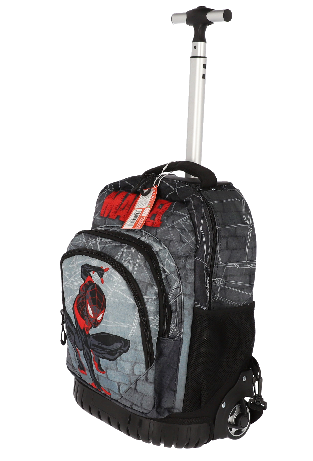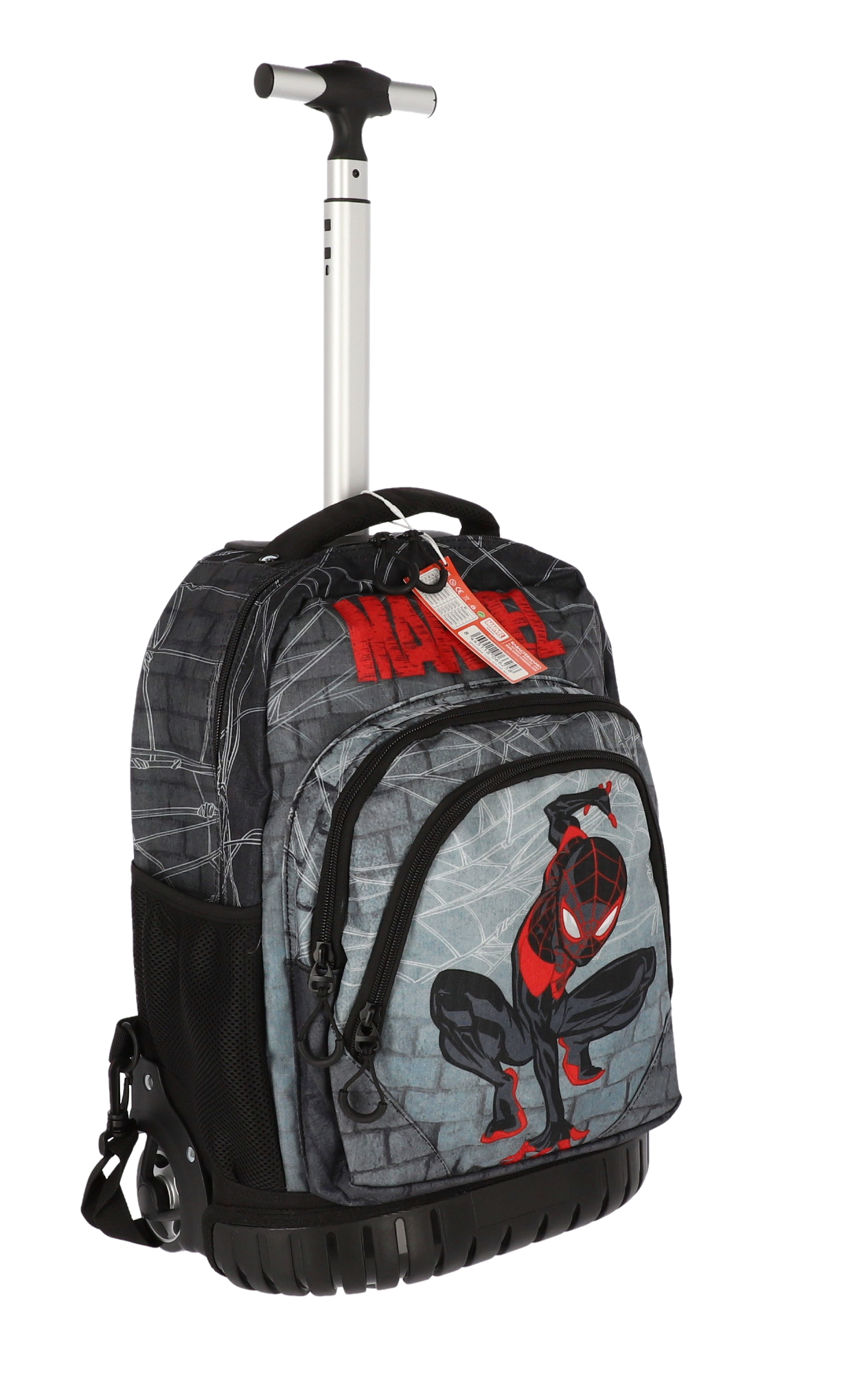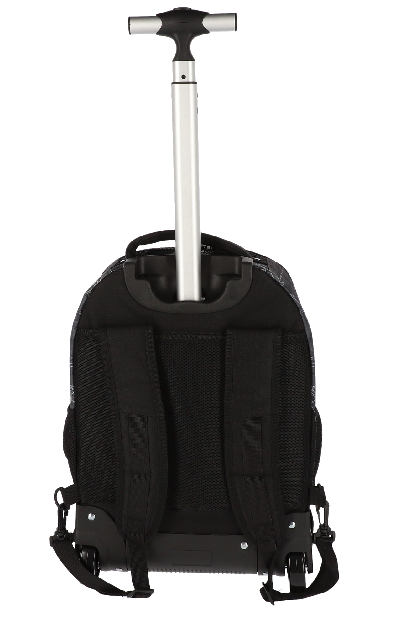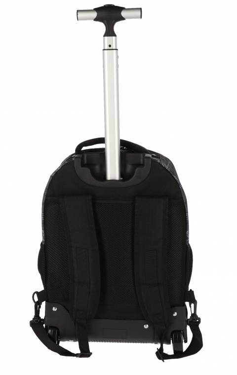 Rucsac școlar cu 2 roți integrateDouă compartimente, un buzunar frontal și două buzunare laterale din plasăMâner telescopic reglabil pe 2 niveluri de înălțime (77/100 cm)Interior căptușit, cu buzunar căptușit pentru dispozitive electroniceDimensiuni: 47 x 32 x 27 cm (cu roțile incluse)